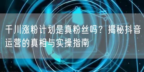 随着抖音平台的日益普及,越来越多的个人和企业开始关注抖音运营,希望通过涨粉计划快速增加粉丝数量。然而,其中是否存在真实的粉丝,以及如何有效进行抖音运营,成为了许多用户关注的焦点。本文将带你深度了解千川涨粉计划,揭示抖音运营的真相,为你提供实操指南。